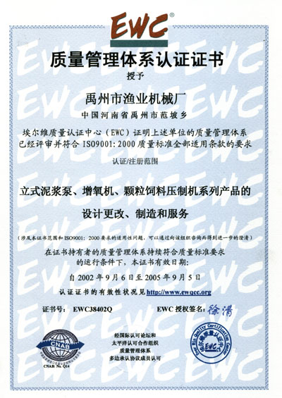 ----幾年來,我廠本著靠科技求發(fā)展,靠信息求市場,靠質(zhì)量求生存,靠管理求效益的治廠方略,大膽進(jìn)行改革,建立起一套全新的運行機(jī)制。2002年9月已通過ISO9001:2000國際質(zhì)量管理體系認(rèn)證;在2000年12月榮獲河南省科學(xué)技術(shù)廳“科技企業(yè)證書“;2001年7月獲河南省科學(xué)技術(shù)廳“高新技術(shù)產(chǎn)品證書“;2001年12月獲河南省科學(xué)技術(shù)廳“高新技術(shù)企業(yè)認(rèn)定證書“;曾獲河南省鄉(xiāng)鎮(zhèn)企業(yè)名牌產(chǎn)品稱號。